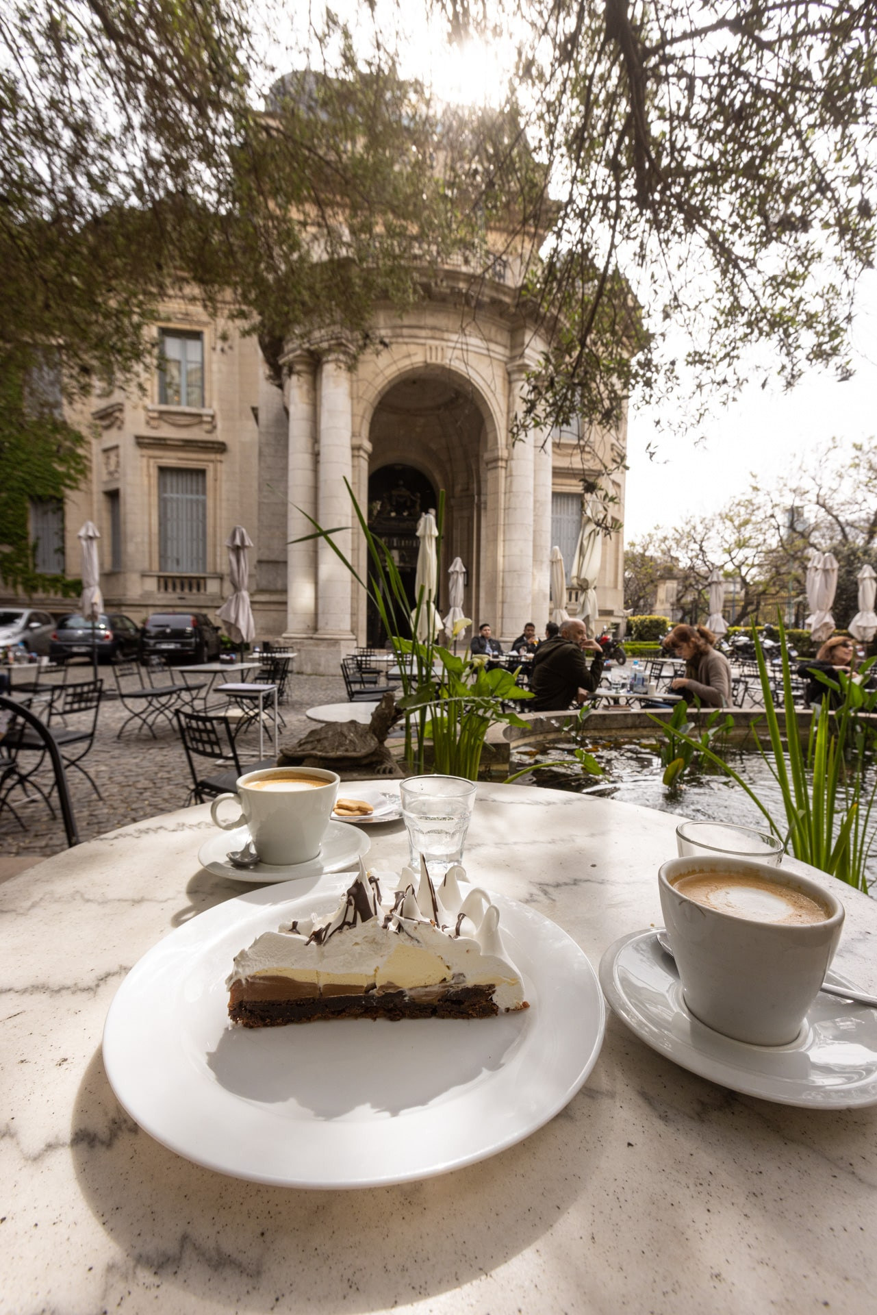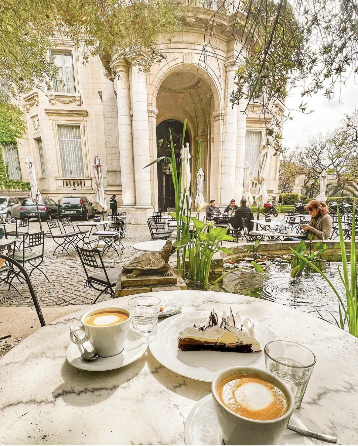 Vegetación, pisos de empedrados, fuentes francesas y la gran fachada academicista del palacio, permiten disfrutar de un momento mágico en Buenos Aires.